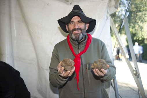 At the inauguration, Michel Santinelli introduced Jean-Philippe Greco, the new President of Trufficulture and also announced with joy that at Le Rouret, the second plot of the test field planted with truffle oaks had begun to produce. He greeted Adrien Maeght, Chairman of the Maeght Foundation and passionate truffle farmer in Grasse, who proposes at each edition a renowned artist to illustrate the celebration of the truffle. This year, Eduardo Arroyo, Spanish painter sculptor, writer and theater designer realised the poster of this 23rd edition. Eduardo Arroyo has signed here one of his last works. This famous figure of French-Spanish arts that used to mix realism and sarcasm, died on October 14th. The kilo of truffles owed to him in exchange for his work was given to his widow at the end of the ceremony.