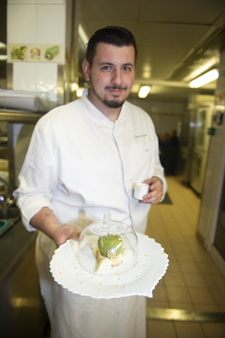 The pastry chef Thomas Trichet began his career at 15 years old. After a stay at a pastry school in Paris that he will leave after a year, he did his apprenticeship with the chefs Michel Michalak, Jean-Marie Haiblot and Jérôme de Oliveira at the Plazza Athénée in Paris. He then went to Switzerland, where he practised his art at the Grand Ambassadeur in Crans Montana and at the Majestic in Montreux. Back in France, he choosed the sumptuous Paul Ricard islands (Les Embiez and Bendor) in the Var and integrates the kitchens of Chefs Christophe Pachecco, Julien Richard et Nicolas Dagouze. Since December, he is Jacques Chibois’ pastry chef at La Bastide Saint Antoine. His signature dish: the Green Apple Delight with Buckwheat Honey, White Chocolate Shell and Cider Mousse in Honeycomb.