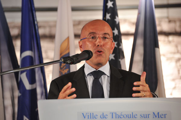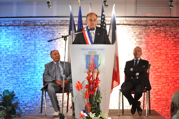 On August 16, 2013, Daniel Mansanti, Mayor of Theoule sur Mer presented the Medal of the City one of the most prestigious “Théouliens”, Senator Serge Dassault, whose industrial, political and media owner busy careers are famous. This tribute was held in the presence of Eric Ciotti, President of the General Council, Pierre Méhaignerie, former minister and a large audience. Present for the 69th anniversary of the Landing in Provence, the Naval Attache of the U.S. Embassy in Paris, Robert Buzzel also attended the ceremony.