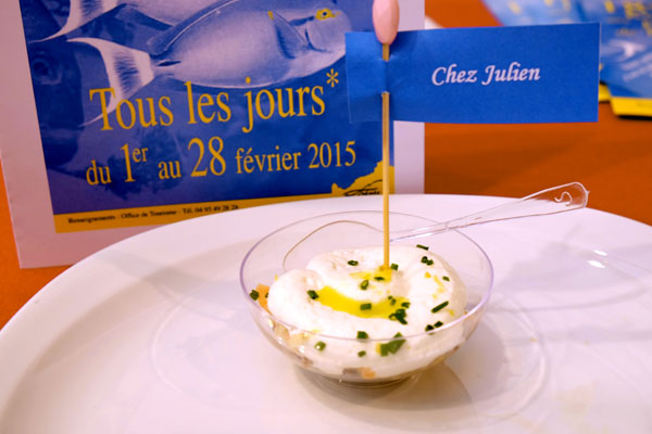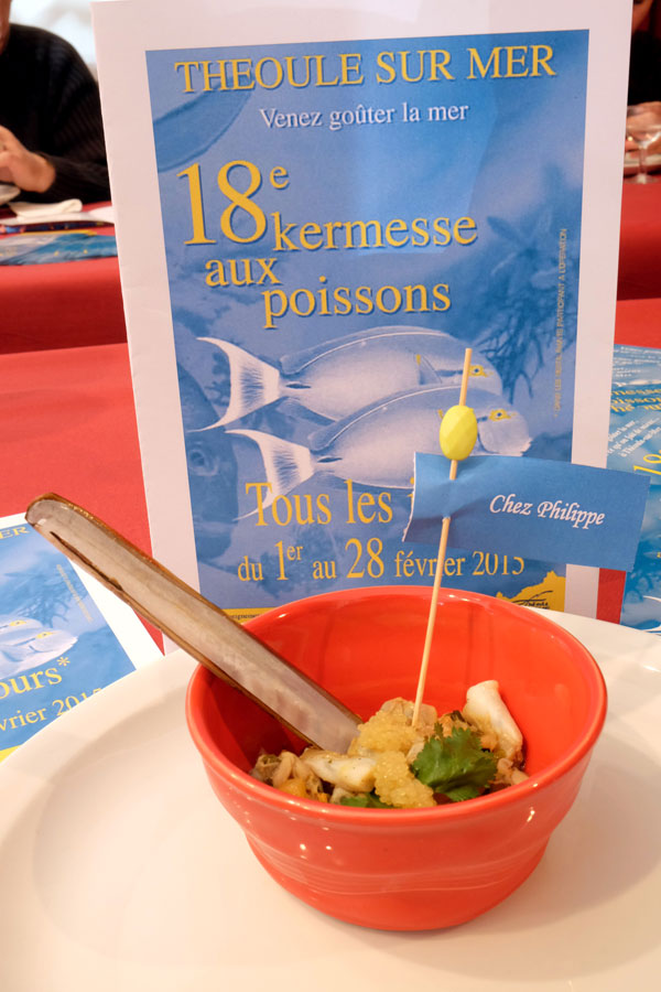 Each of the 8 chefs had prepared samples of their talent that we offer you to taste with the eyes to sharpen your appetite before enjoying a meal at La Kermesse aux Poissons in Theoule sur Mer.