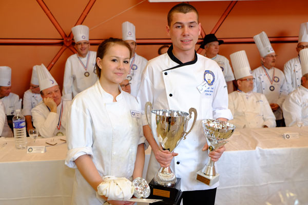 At the end of the event, Julien Bonadonna, the winner of the second edition, was presented with the cup by Alexis Ferré, winner in 2004. He will have the privilege to perform a professional internship in a renowned institution. Chloe Fernandez finished 2nd and Jean-Noël Somphal was 3rd. The three winners shared the many prizes offered by sponsors and members of the International Club Les Toques Blanches like cups, professional case, cookbooks…
