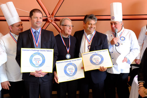 This second edition was enriched with three new Toques Blanches: Serge Bottin, Director of the Cannes School of Trades, Christian Willer, former chef of the Martinez Hotel in Cannes and Laurent Balicco, partner of the association. Pierrick Thomas gave them the diploma and the medal of the Toques Blanches International Club Association.