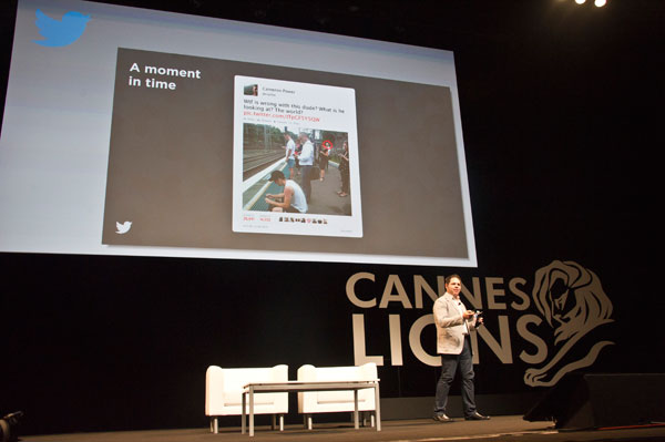 Joel Lunenfeld ended up by announcing the Twitter Project #LIVE documentary that is to premiere at Cannes Lions on Friday. To help finish the film exploring how everyone can now participate in global stories, he asked the audience to share their stories using the #livestories hastag.