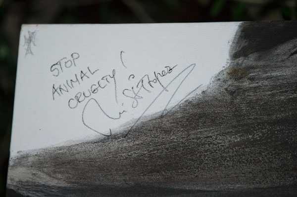 During the opening, a raffle raised funds for the Glama association, working to protect animals, a cause close to BB’s heart through her foundation. As grand prize, Una St Tropez offered for the raffle one of her works, signed by her, with the words “Stop Animal Cruelty”.