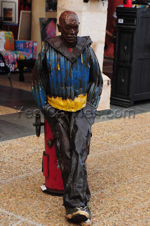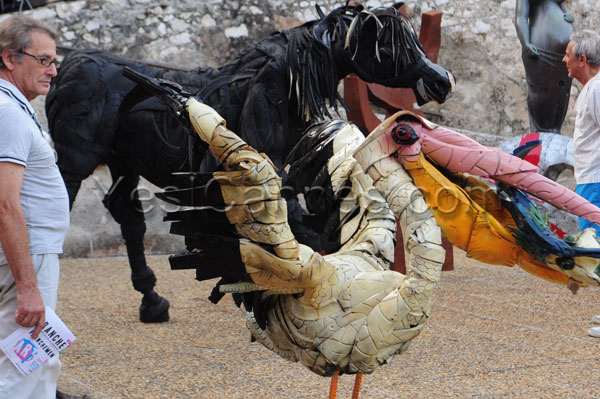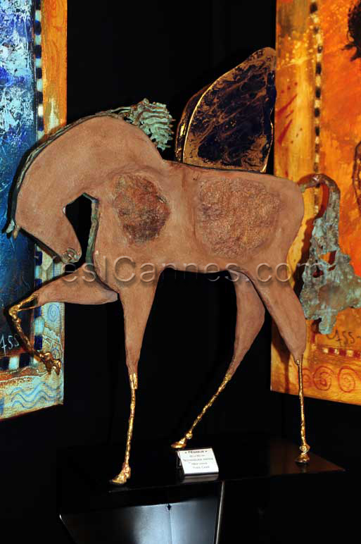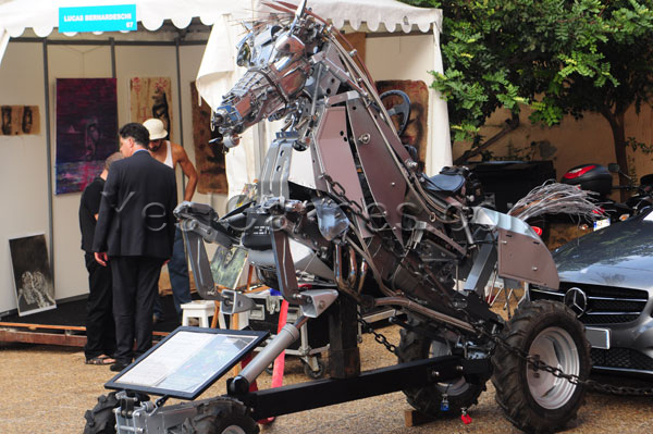 The exhibition in the streets of Villefranche is to last until September 22. Franchement Art undoubtedly values a quality cultural image and the international reputation of the French Riviera. At the Citadel, 60 artists of all nationalities have exhibited their works of art including paintings, drawings, sculptures, to the delight of visitors who came to discover new talents or other already publicized internationally. At the entrance of the Citadel, a Statue of Liberty revisited by Kristian: his “Miss Liberty.” The artist is a press cartoonist and author of this year’s official poster. He has been exhibiting worldwide for 30 years and every year, his drawings are used as model for some of the Nice Carnival floats. A mechanical horse by Cem, prancing, was greeting visitors.