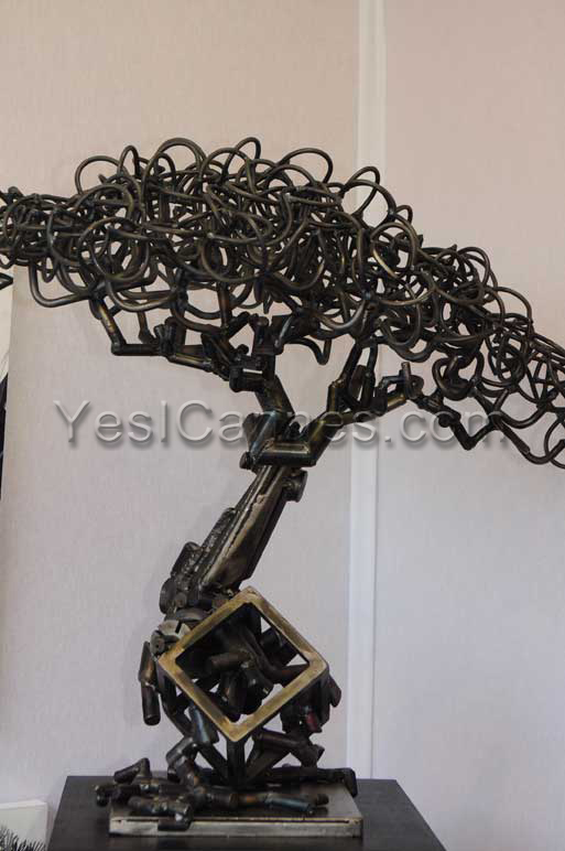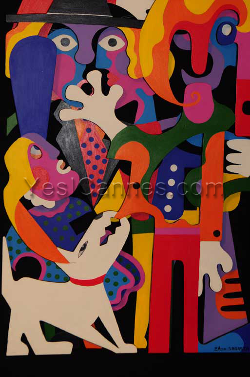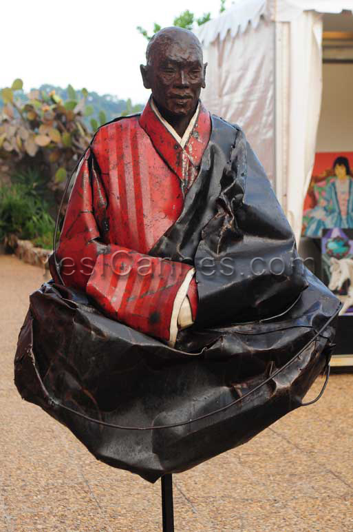 After the imposing gate of the citadel, our steps lead us naturally into the Volti courtyard where our gaze is intercepted by Nicolas Lavarenne’s airborne sculpture; then turning the head, we are intrigued by the sculptures of animals made out of pneumatic of Belgian Serge Van de Put. Facetious garden gnomes, much funnier than their lawn version; in the aisles are sculptures and paintings that come together like the traveling artist Emmanuel Michel’s ones, friendly and warm “orange painter” Ismael Cosma or color which takes geometric shapes with Davis Ferreira.