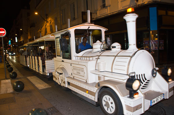 Privatized for the occasion, the small Cannes tourist train roamed the city with a jazz band and, throughout the evening, guests have discovered the Cinema Capital on board the famous train, touring streets from one shop involved to the other.