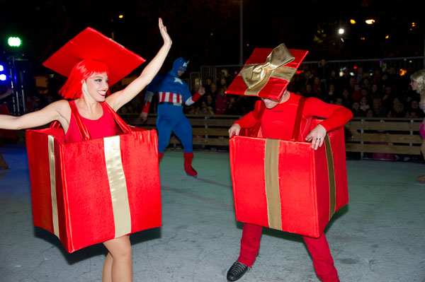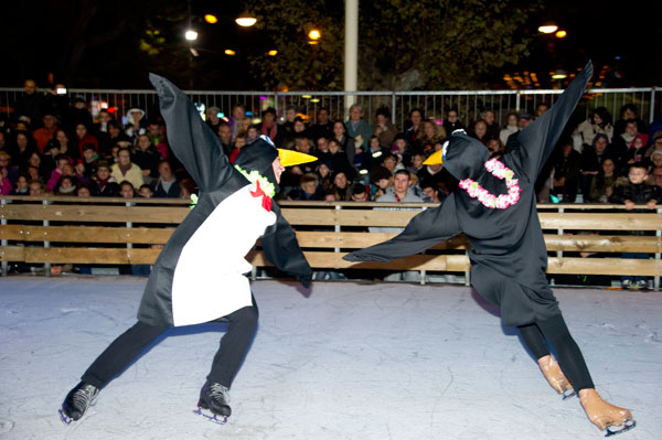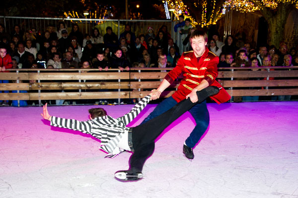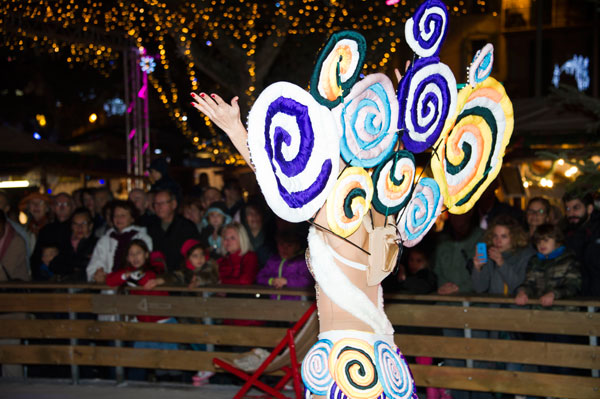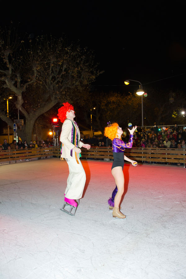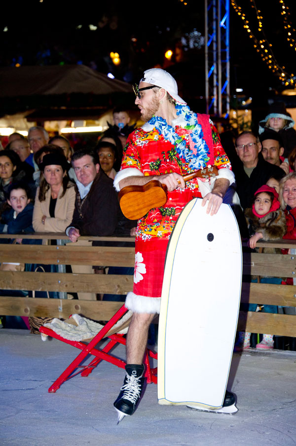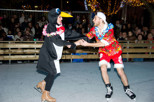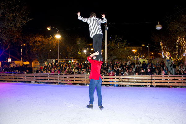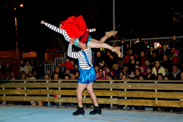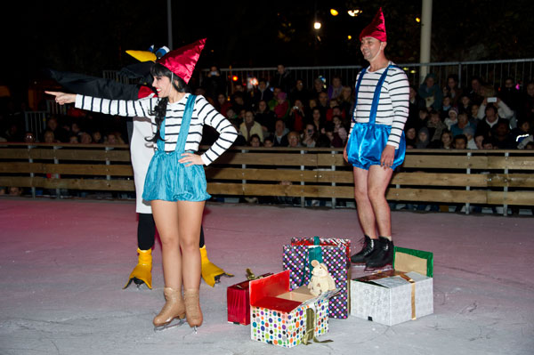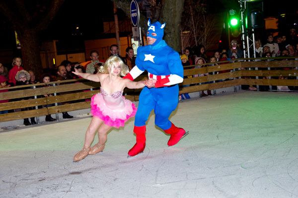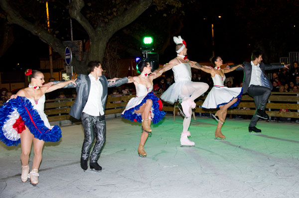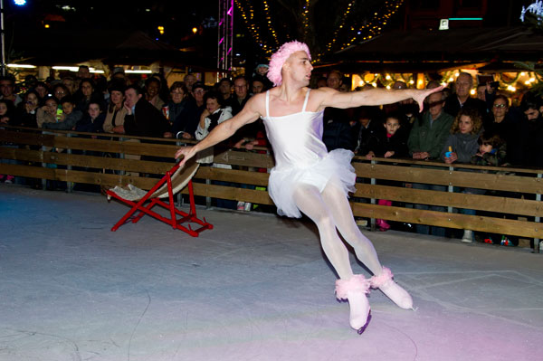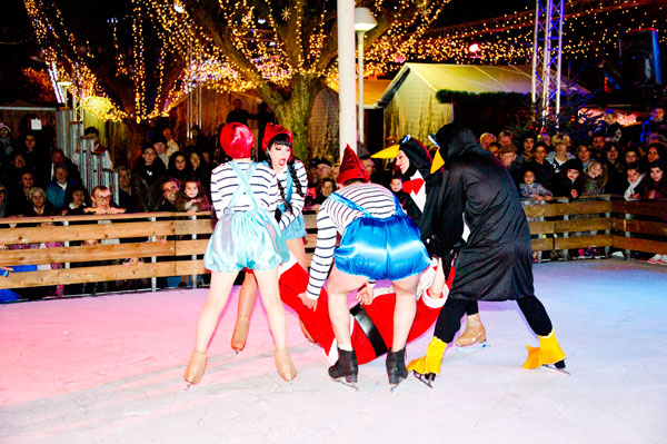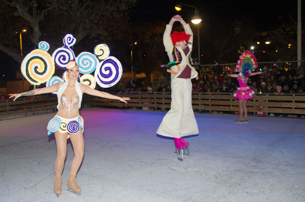 The Christmas Village on the Allées de la Liberté was inaugurated on December 5, 2014 by Gilles Cima, Deputy to festivals and musical events, and members of the City Council. At the same time, an ice rink was inaugurated by another “royal gift”: the “Santa’s Bride” musical by the Holiday on Ice skaters. The tale on ice tells – for the delight of young and old children – how Rupert Christmas, Santa’s son, replaces his father “au patin levé” with the help of his fiancée Mary Christmas for the gifts distribution. Many comic characters appear to try helping or create a joyful acrobatic jumble.