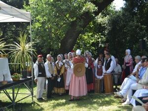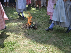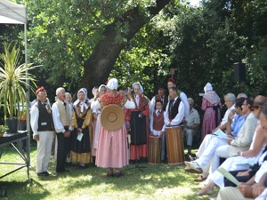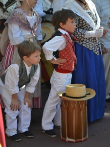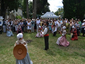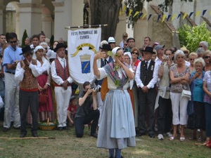 During the Mass, Father Chalard blessed the vine stock that would be used for the «Stock Dance». The stock dance was performed by the Provencal "Academy Dou Miejour". Ladies danced a farandole around a fire of vine shoots and then the blessed stock was thrown into the fire. This dance calls for Saint Cassien to help producing good grapes.