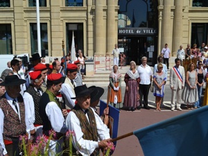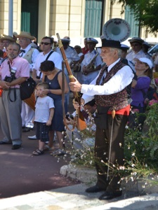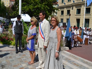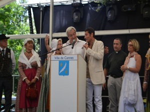 On July 23, folk groups marched the street of the city to the sound of the band «L’Avenir L’Islois» from the city of L’Isle sur la Sorgue. The folks groups were: l’Academie dou Miejour, the Provencal Academies of Cannes and Mandelieu, Lei Baisso Luserno and Nissa La Bella. After marching the streets, they offered the «Aubade to Mayor of Cannes», represented by his First Deputy, Mr David Lisnard. Songs and dances were performed, peppered with blunderbusses gunshots before sprays of flowers were placed and Mr Lisnard speech.